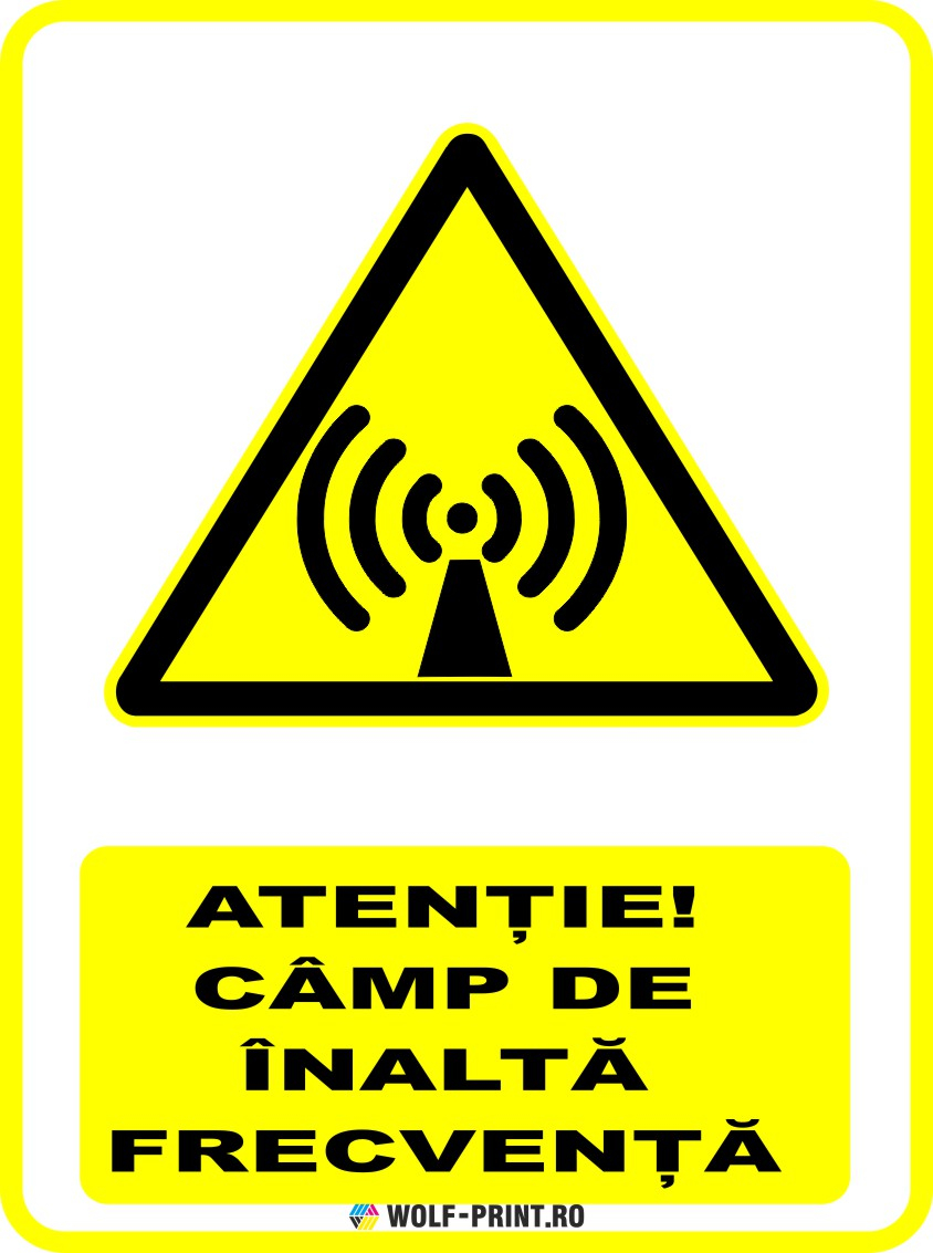 Indicatorul de avertizare Camp de inalta frecventa de la Wolf-Print.ro este conceput pentru a semnaliza clar si vizibil zonele cu risc maxim in zone industriale, birouri, scoli, depozite sau spatii comerciale.