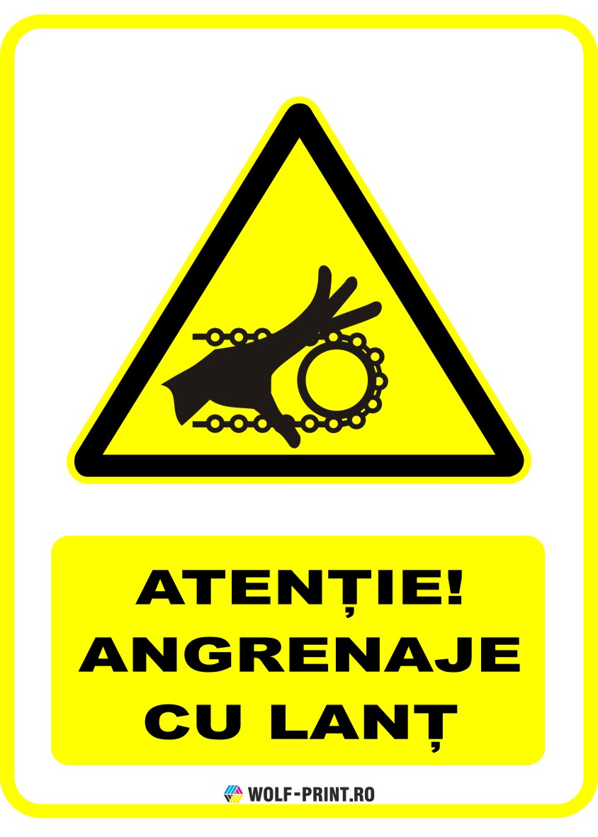 Indicatorul de avertizare Angrenaje cu lant de la Wolf-Print.ro este conceput pentru a semnaliza clar si vizibil zonele cu risc maxim in zone industriale, birouri, scoli, depozite sau spatii comerciale.