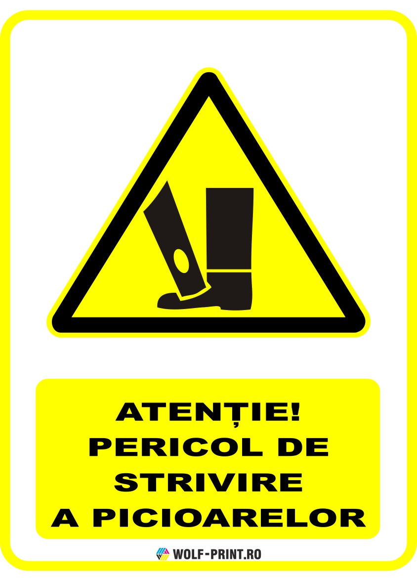 Indicatorul de avertizare Pericol de strivire a picioarelor de la Wolf-Print.ro este conceput pentru a semnaliza clar si vizibil zonele cu risc maxim in zone industriale, birouri, scoli, depozite sau spatii comerciale.