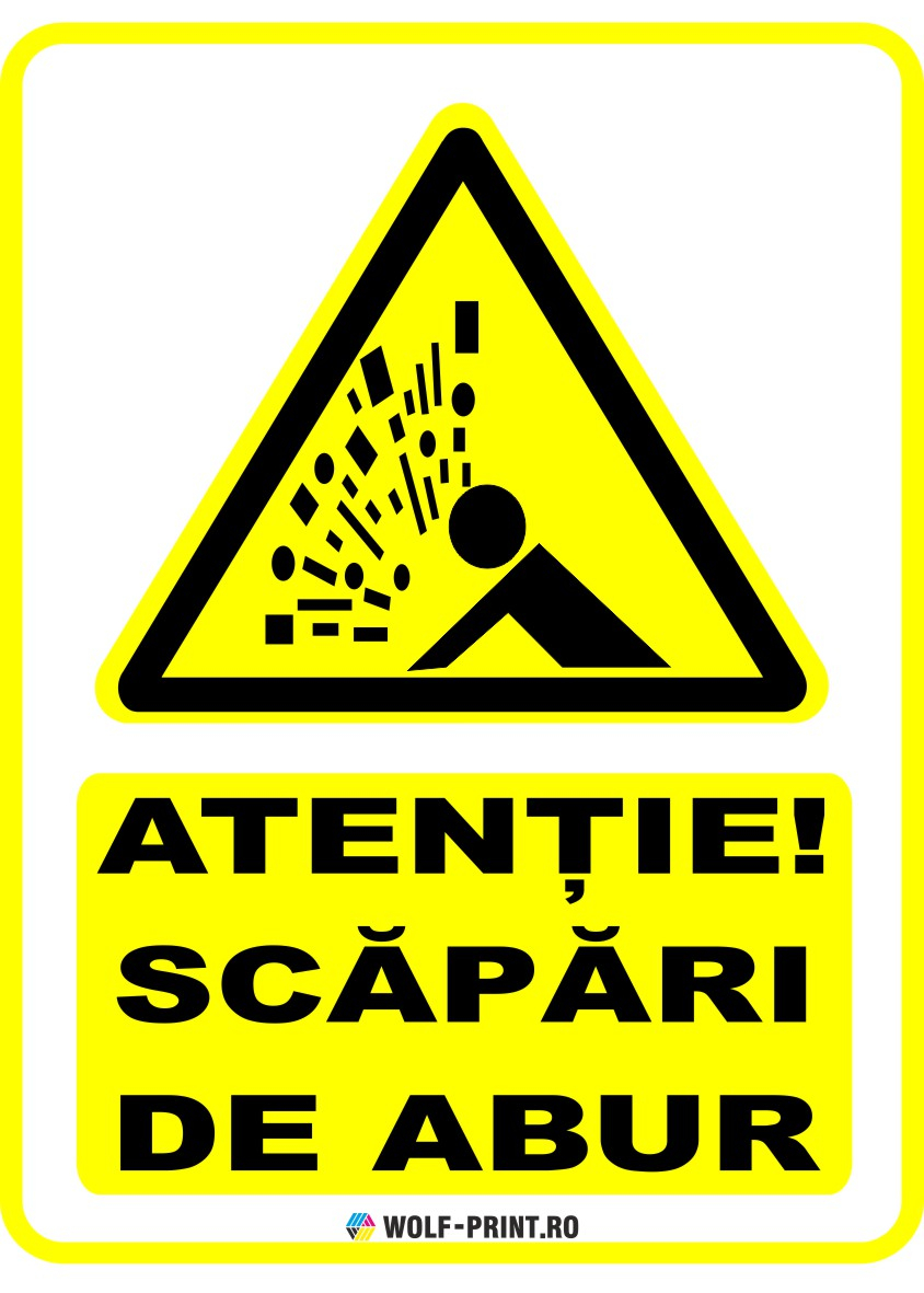 Indicator de avertizare Scapari de abur, realizat din materiale durabile, pentru interior si exterior. Aplicare usoara pe suprafete curate, fara praf, uleiuri, grasimi sau silicon. Calitate profesionala Wolf-Print.ro.