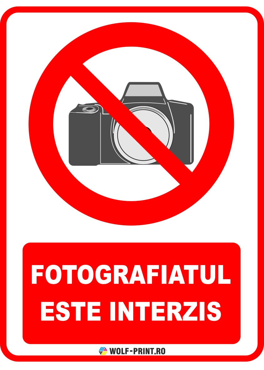 Acest indicator de interzicere, Fotografiatul este interzis de la Wolf-Print.ro este conceput pentru a semnaliza clar actiuni interzise in spatii publice, industriale sau private, asigurand siguranta si respectarea regulilor.