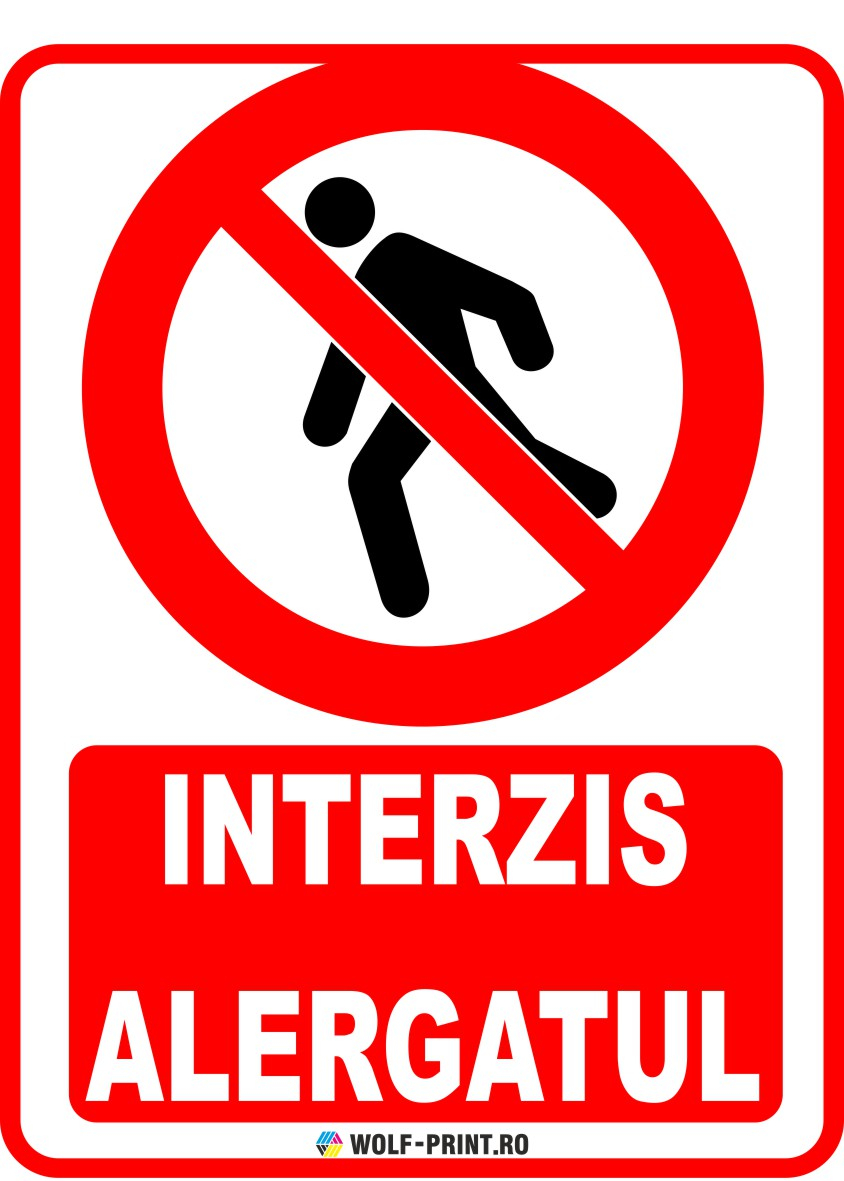 Acest indicator de interzicere, Interzis alergatul de la Wolf-Print.ro este conceput pentru a semnaliza clar actiuni interzise in spatii publice, industriale sau private, asigurand siguranta si respectarea regulilor.
