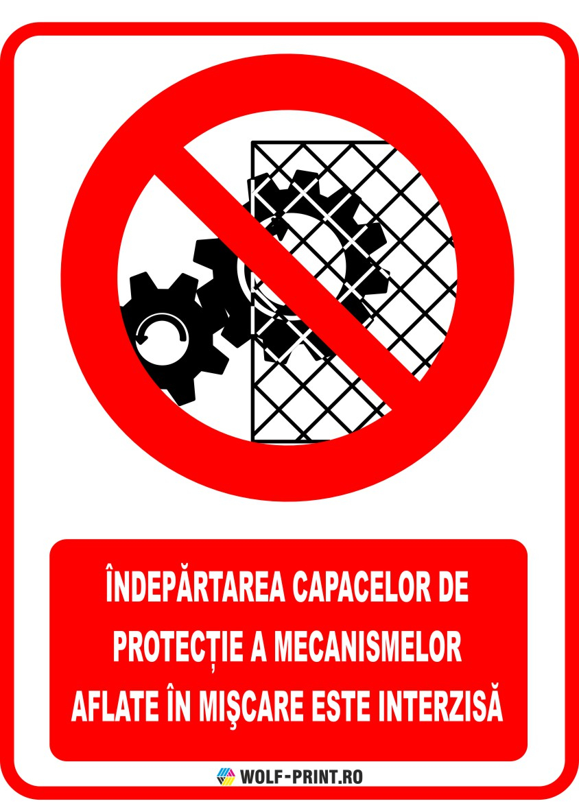 Acest indicator de interzicere, Indepartarea capacelor de protectie de la Wolf-Print.ro este conceput pentru a semnaliza clar actiuni interzise in spatii publice, industriale sau private, asigurand siguranta si respectarea regulilor.