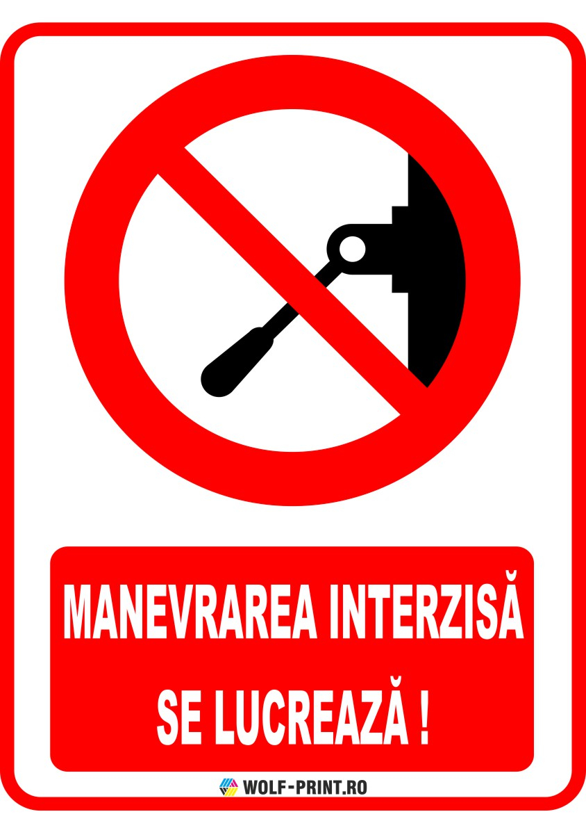 Acest indicator de interzicere, Manevrarea interzisa de la Wolf-Print.ro este conceput pentru a semnaliza clar actiuni interzise in spatii publice, industriale sau private, asigurand siguranta si respectarea regulilor.