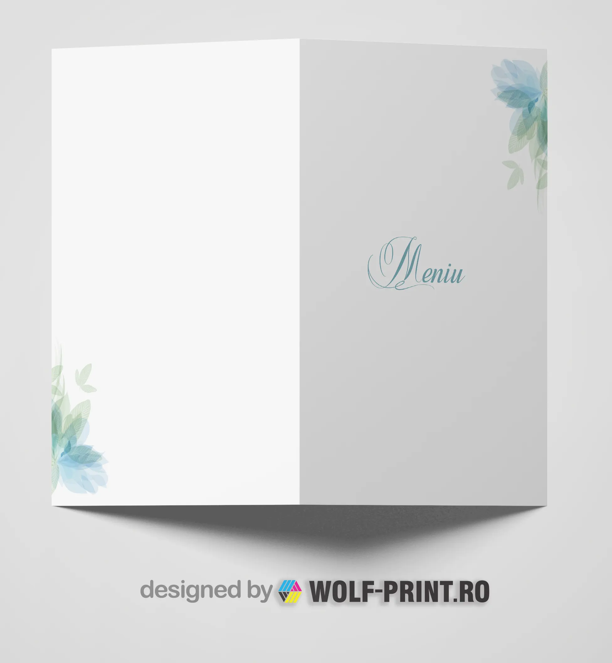 Meniu masa nunta model 2 cu design floral modern tiparit profesional de wolf-print.ro