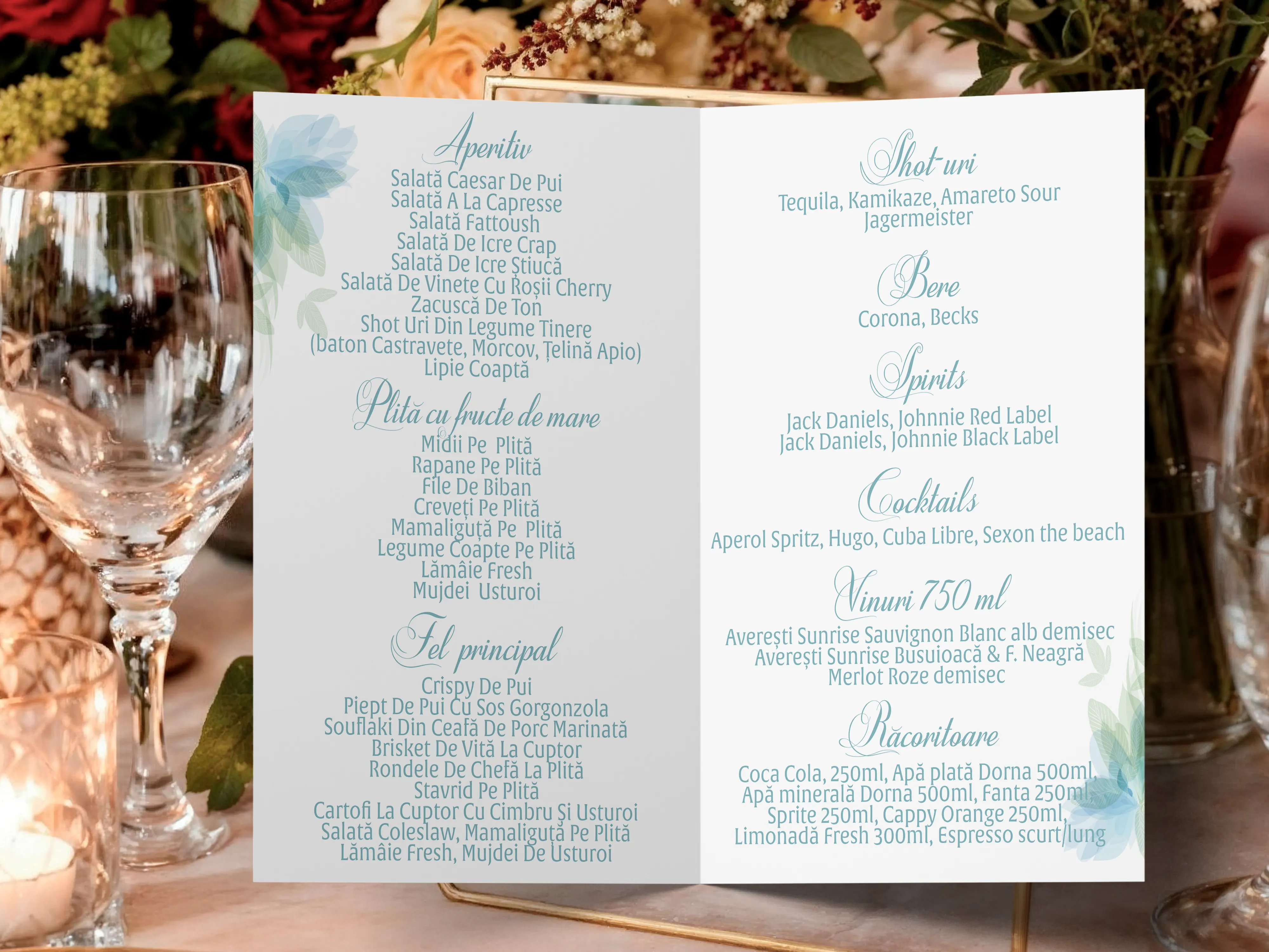 Meniu nunta model 2 – design floral modern